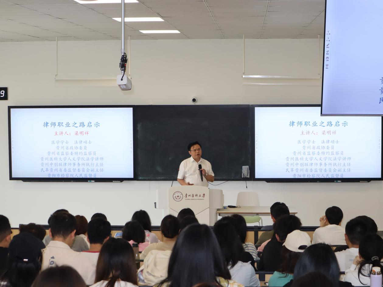 为加强法学员工职业规划及对律师职业的了解,提升律师职业技能知识。2024年4月17日,公司法学专业教师、贵州省政协委员梁明祥在善思楼R105教室举办“律师职业之路启示”主题讲座。讲座中,梁明祥回顾了自己的律师职业道路,分享他执业以来的所感所悟。其次,他从当下社会律所发展现状和规模入手,深度剖析律师道路的风险…