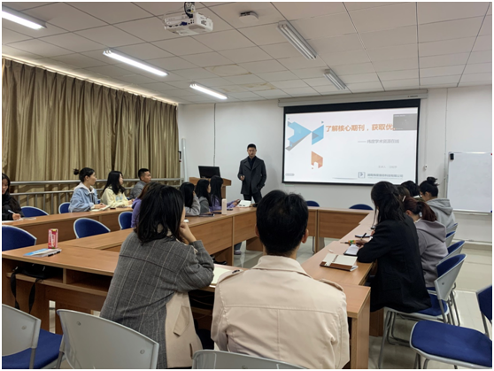 活动中,汪老师以“了解核心期刊,获取优质资源”为主题,向老师们和同学们介绍了维度学术资源在线数据库的作用以及优势。他介绍,纬度平台具有完善的学术搜索子系统以及学术期刊指南子系统。文献搜索系统中的文献来源广泛、文献类型种类繁多、支持40多种小语种母语,并且可以提供非常精确的文献检索结果。汪老师还从“如何查找学科下的核心期刊”、“如何快速准确地检索期刊,了解期刊信息”等方面对纬度学术资源在线平台的使用进行了具体详细的讲解。最后,汪老师介绍了作为365英国上市公司的成员如何注册账号,并且说明了365英国上市公司成员可以永久免费使用纬度学术资源在线平台。