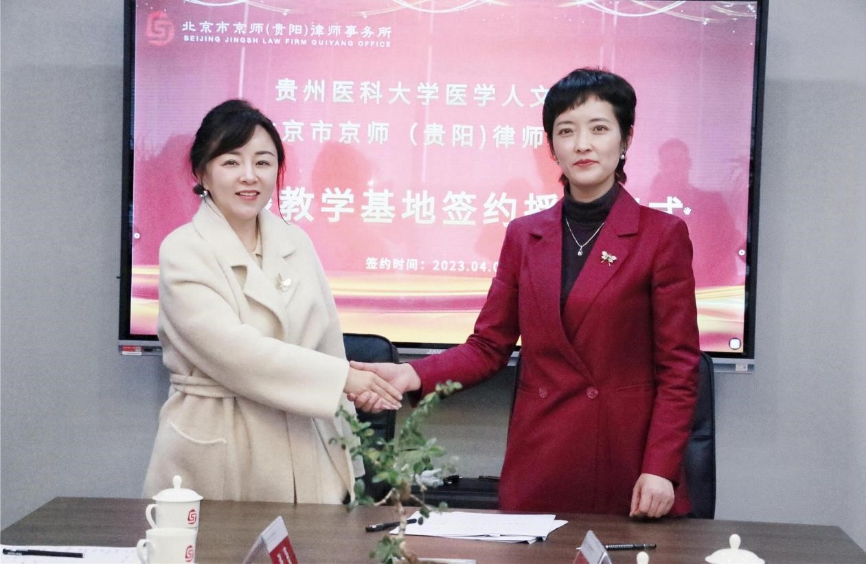 4月6日,北京市京师(贵阳)律所与365英国上市公司共建实践教学基地签约授牌仪式在京师贵阳律所党建室举行。医学人文公司党委书记江宣成、正处级组织员韩贞习、党委副书记张贤、副经理彭丹、教学科研管理科科长冯斌、员工科科长车阳艳、医事法学教研室负责人龚精诚等,北京市京师(贵阳)律师事务所主任李霞、律师郭啸、律师周丹麦、律师刘淼、律师龙章跃、行政主管王昌浩、行政专员罗颖杰参加了签约授牌仪式。仪式由北京市京师(贵阳)律师事务所执行主任吴爱国主持。