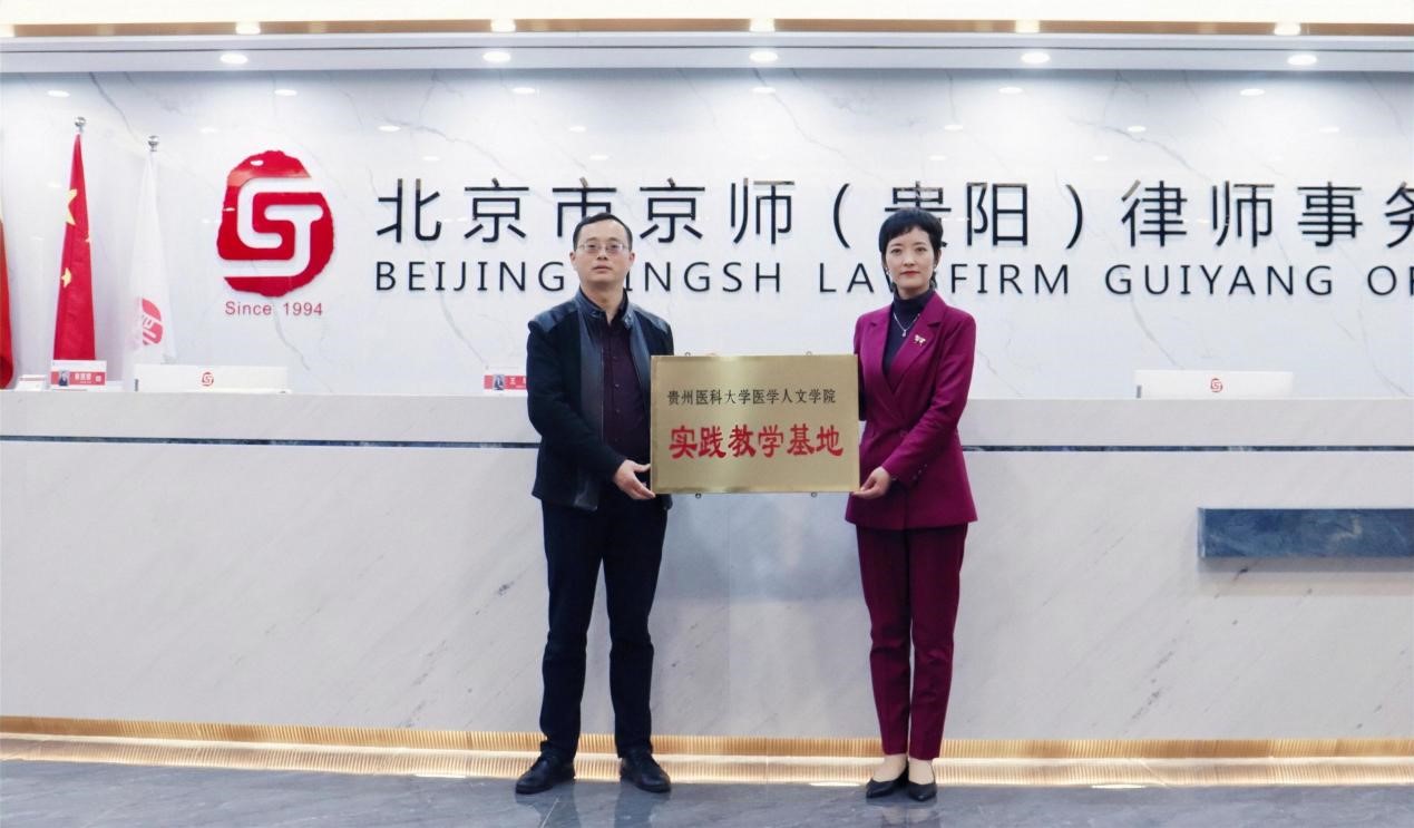 江宣成代表公司对京师贵阳律所建立实践教学基地的大力支持表示感谢,并从团队力量、团队建设、人才培养、就业创业等方面对公司有关情况进行介绍;期望以本次合作为契机,延顺到党建共建、法律援助、心理咨询等方面,不断拓宽合作渠道,不断创新合作方式。