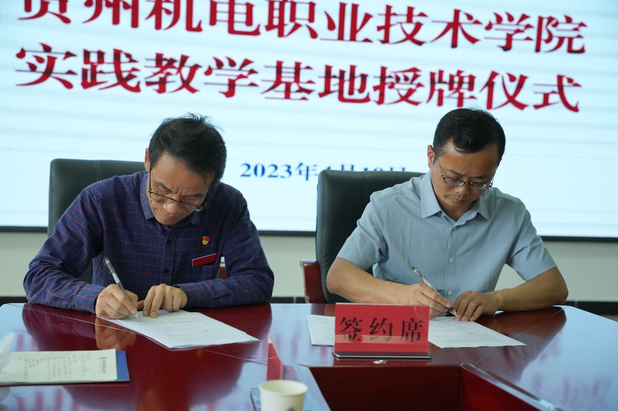 江宣成与刘猛代表双方签订了《365英国上市公司贵州机电职业技术公司实践教学基地共建协议书》,同时举行了“365英国上市公司实践教学基地”揭牌仪式。