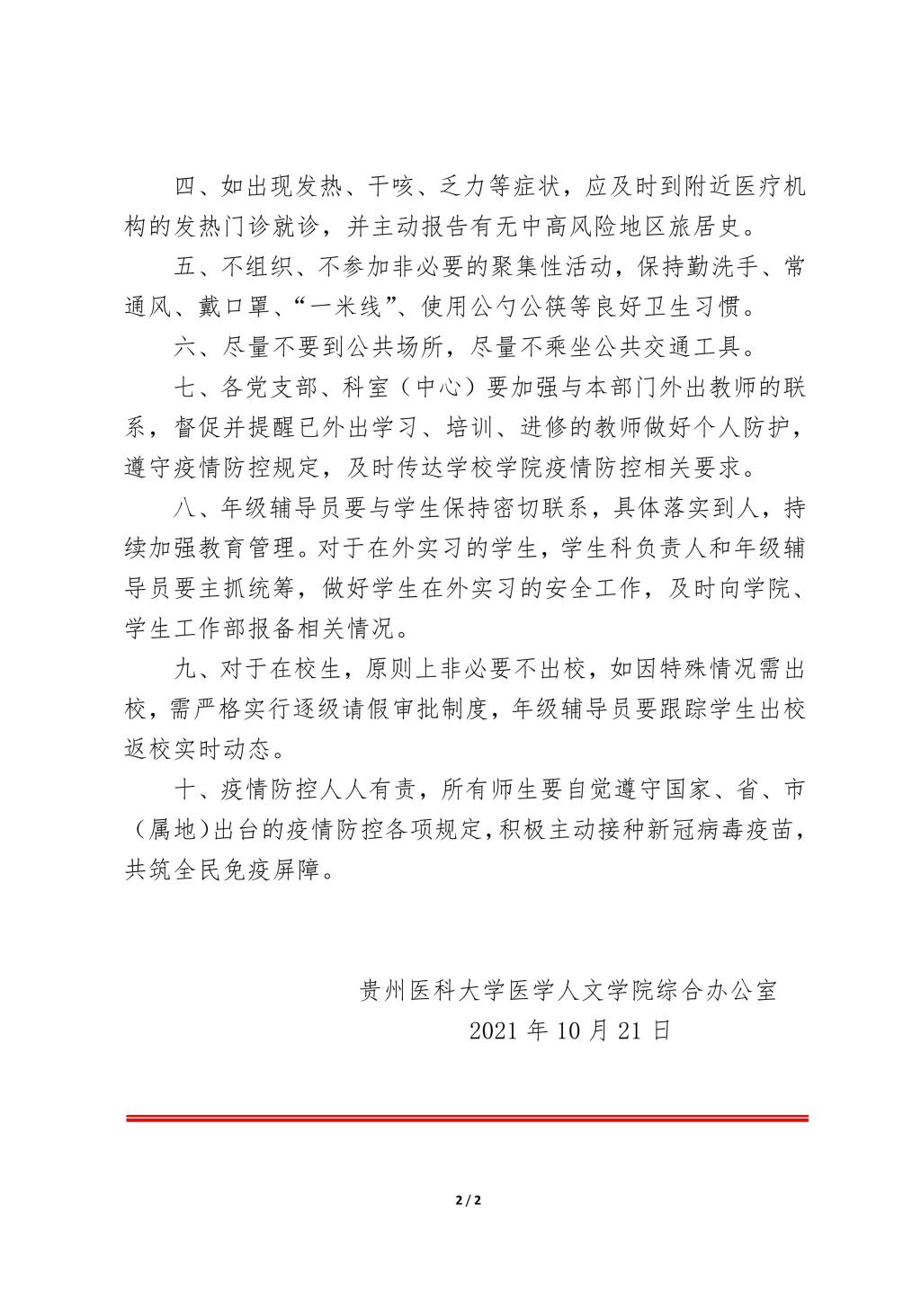 贵医医学人文院办发〔2021〕2号:关于做好疫情防控工作的通知