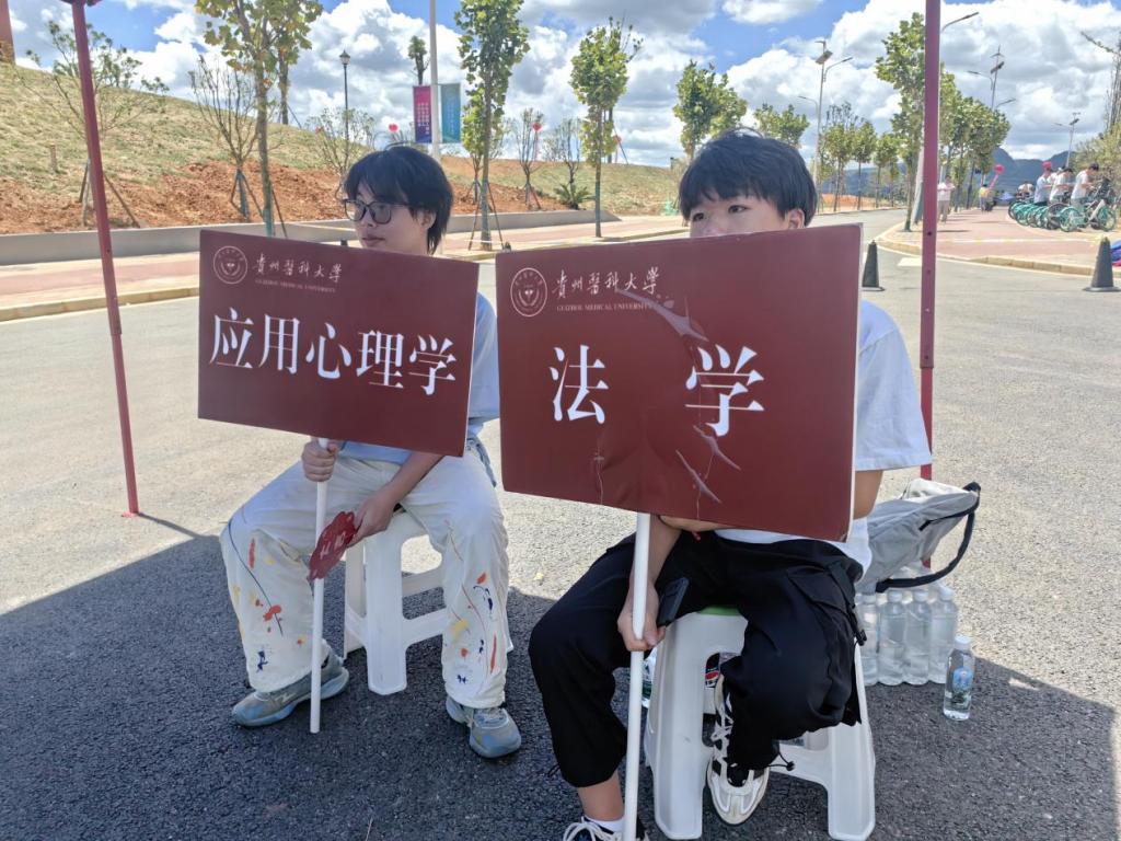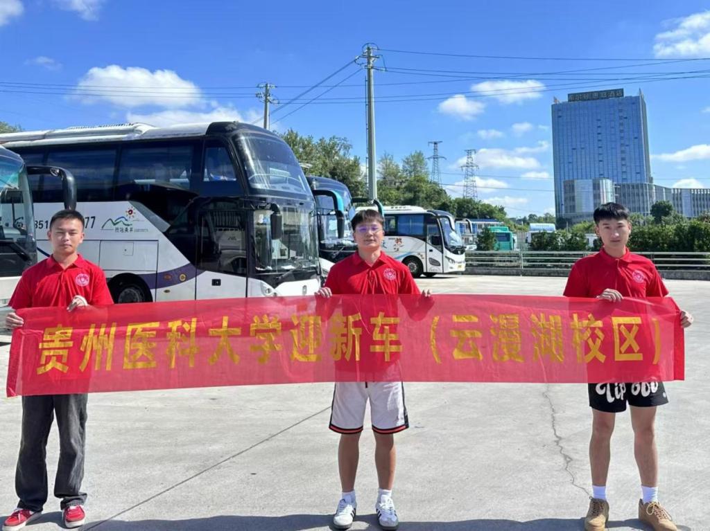 报到当天,公司老师和员工志愿者身穿统一的志愿者服装,在贵阳龙洞堡车站接站点参加全校迎新,志愿者手持引导牌,热情地迎接每一位新生,为他们踏入贵医的第一站保驾护航。