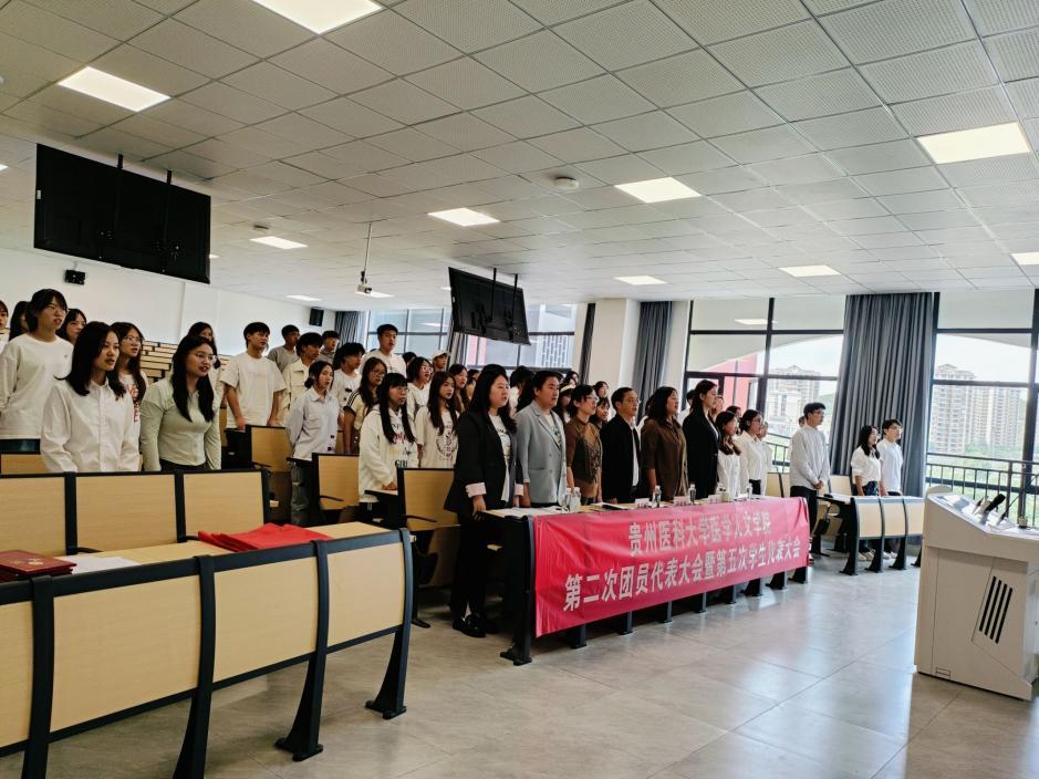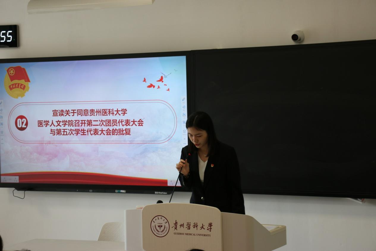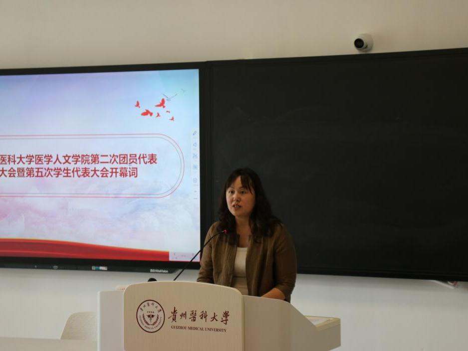 张贤致开幕词,这次大会是在全院师生深入学习贯彻落实习近平新时代中国特色社会主义思想,学习党的二十大精神的背景下,奋力谱写"百年贵医"建设高质量发展新篇章背景下所召开的一次盛会。因此,我们要务必开好这次团(学)代会。