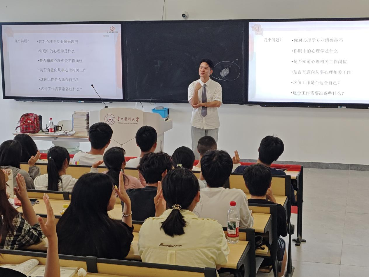 活动以互动提问开篇,两位分享人以“你为什么选择心理学?”切入,引导新生回顾选择专业的初心,激发对学科的深层思考。聚焦心理学、医学人文相关专业的职业赛道,他们从岗位要求、发展前景、能力适配性三个维度,对心理咨询师/心理治疗师、心理健康教育教师、社会工作者、心理学研究等多元职业方向进行深度剖析,结合自身多年行业经验分享真实案例与成长故事,让新生直观了解不同职业所需的专业知识与能力素养,明确职业方向与学习目标的关联。
