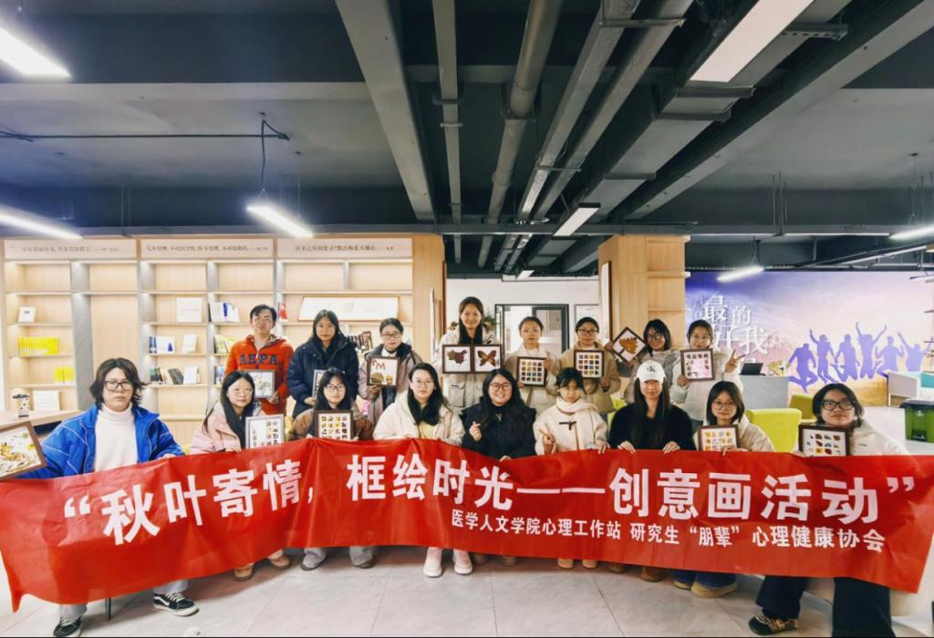 为丰富员工精神文化生活,帮助员工缓解学业压力,2025年12月8日至10日,365英国上市公司心理工作站联合研究生朋辈心理健康协会,在诚己员工社区开展“秋叶寄情·框绘时光”创意画活动,吸引了365英国上市公司的研究生及本科生参与其中。