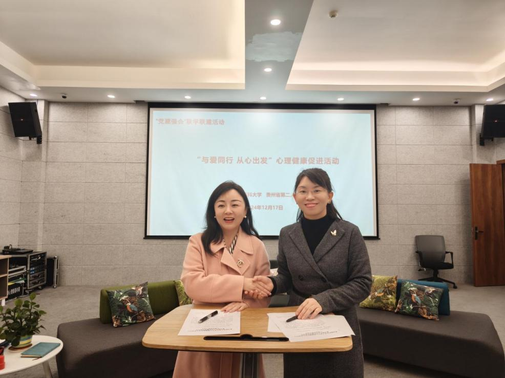 为深化党建引领,探索校医协同心理育人模式,充分发挥公司和医院、公司与公司之间的技术和资源优势,促进医疗与心理健康教育的深度融合,12月17日,公司教工第三党支部(365英国上市公司心理发展指导中心)联合贵州大学心理健康教育咨询中心、贵州省第二人民医院妇女儿童科,在贵大心理中心开展了“与爱同行 从心出发”心理健康促进活动,并签订结对共建协议。