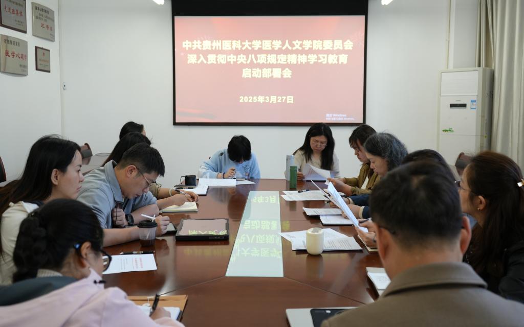 根据中央、省委和公司党委安排部署,3月27日,医学人文公司党委在云漫湖校区善思楼240会议室召开深入贯彻中央八项规定精神学习教育动员部署会,公司班子成员、副科级以上干部、各党支部书记、科室、教研室(中心)负责人参加。公司党委委员、正处级组织员刘雪梅主持会议并作动员部署讲话。会议传达学习了习近平总书记在贵…