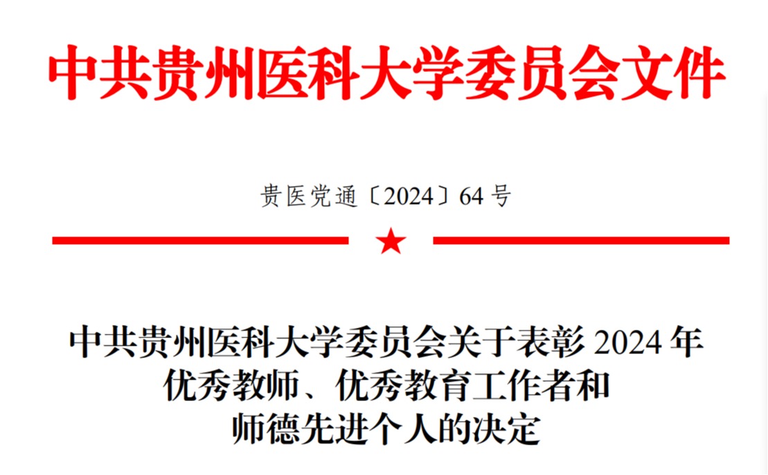 一、第十届贵州省高等公司产品成果奖 二等奖: 冯广卫二、2024年贵州省教育科学研究成果奖 一等奖:冯游游三、2024年贵州省高校教师教学创新大赛 课程思政组二等奖:杨 明四、2023年贵州省普通本科高校“金师” 冯广